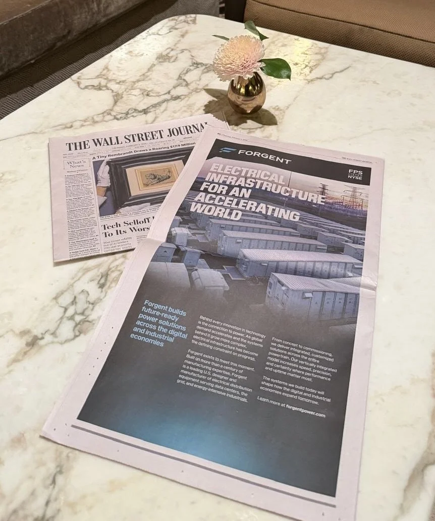 We told the story of value for a new electrical infrastructure company from launch all the way to its February 2026 IPO. After aligning on a name and brand positioning, we developed and executed a 360° campaign, including Times Square OOH, full-page Wall Street Journal print, and three campaign videos, to take Forgent public at an $8.2B valuation. We also wrote and designed 20+ in-depth product pages for Forgent’s new website.